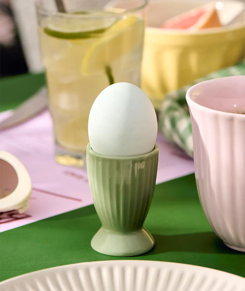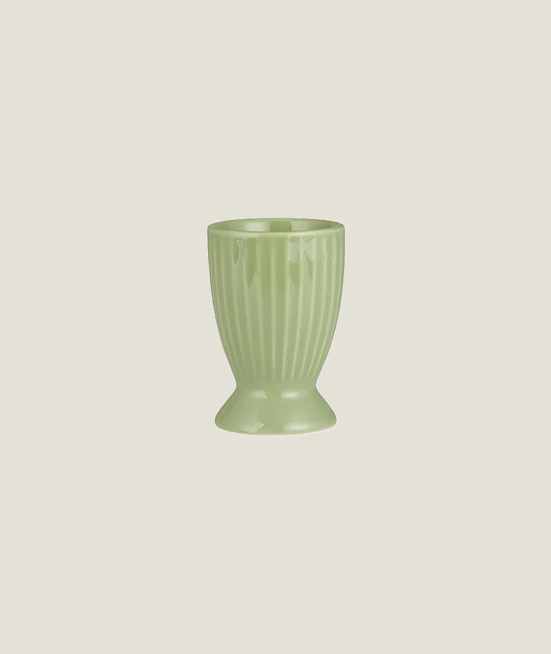 En charmig och tidlös ägghållare i stengods från Mynte-serien, designad för att ge en stilfull touch till din frukostdukning. Den vackra wasabigröna nyansen tillför en fräsch och naturlig känsla, medan det hållbara stengodset ger en robust och kvalitativ finish.