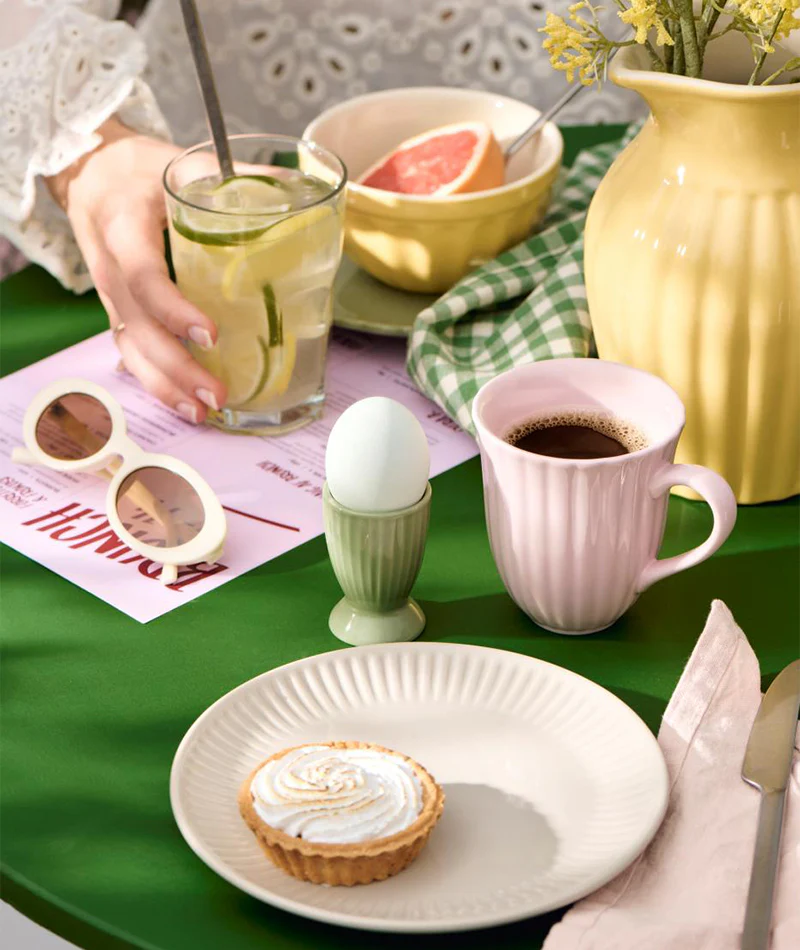 Den klassiska formen gör den enkel att matcha med andra delar ur Mynte-serien eller ditt befintliga porslin. Perfekt för både vardagsbruk och festliga frukostar där detaljerna gör skillnaden.