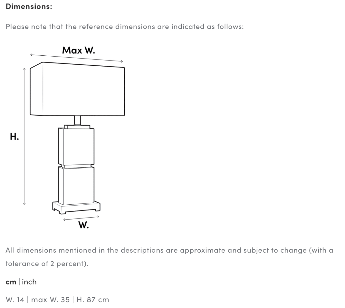 | Shade dimensions | 35 x 35 x H. 30,5 cm |