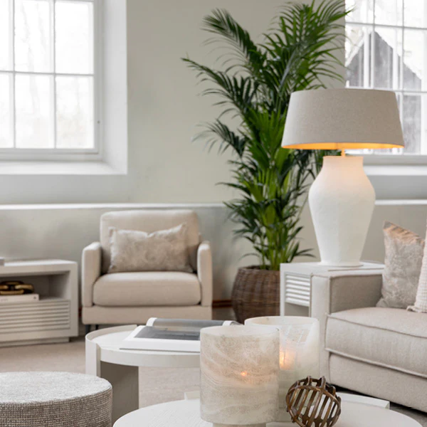 Bordslampan Fiora från Artwood i metall med organiskt mönster i färgen Ivory. Den linnefärgade textilsladden tillför en varm och naturlig känsla som förstärker lampans sofistikerade uttryck. Observera att lampskärmen ej ingår. Lampskärmen på produktbilden är Lampskärm Shade Classic i storlek XX-Large