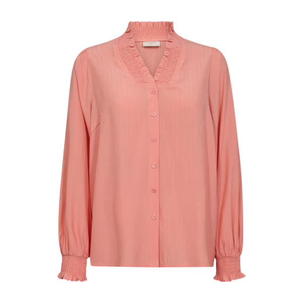 Den här blusen är ett snyggt och mångsidigt plagg för alla garderober. Blusen är gjord i ett mjukt och bekvämt tyg som faller vackert. Den har resår och är rynkad vid ärmslutet. Perfekt att dra upp eller ha ärmen lång