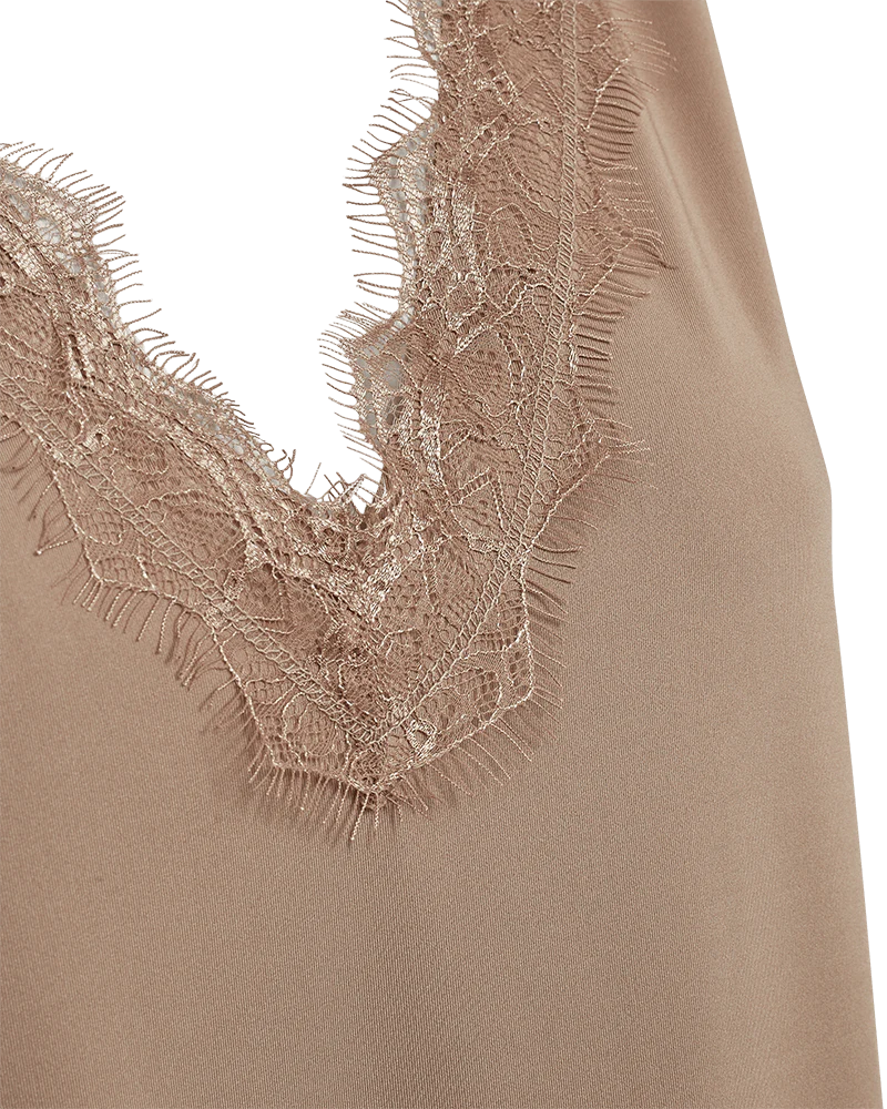 Feminin och stilren topp med dekorativa spetsdetaljer som ger ett elegant uttryck. Det mjuka och stretchiga materialet gör linnet bekvämt att bära.