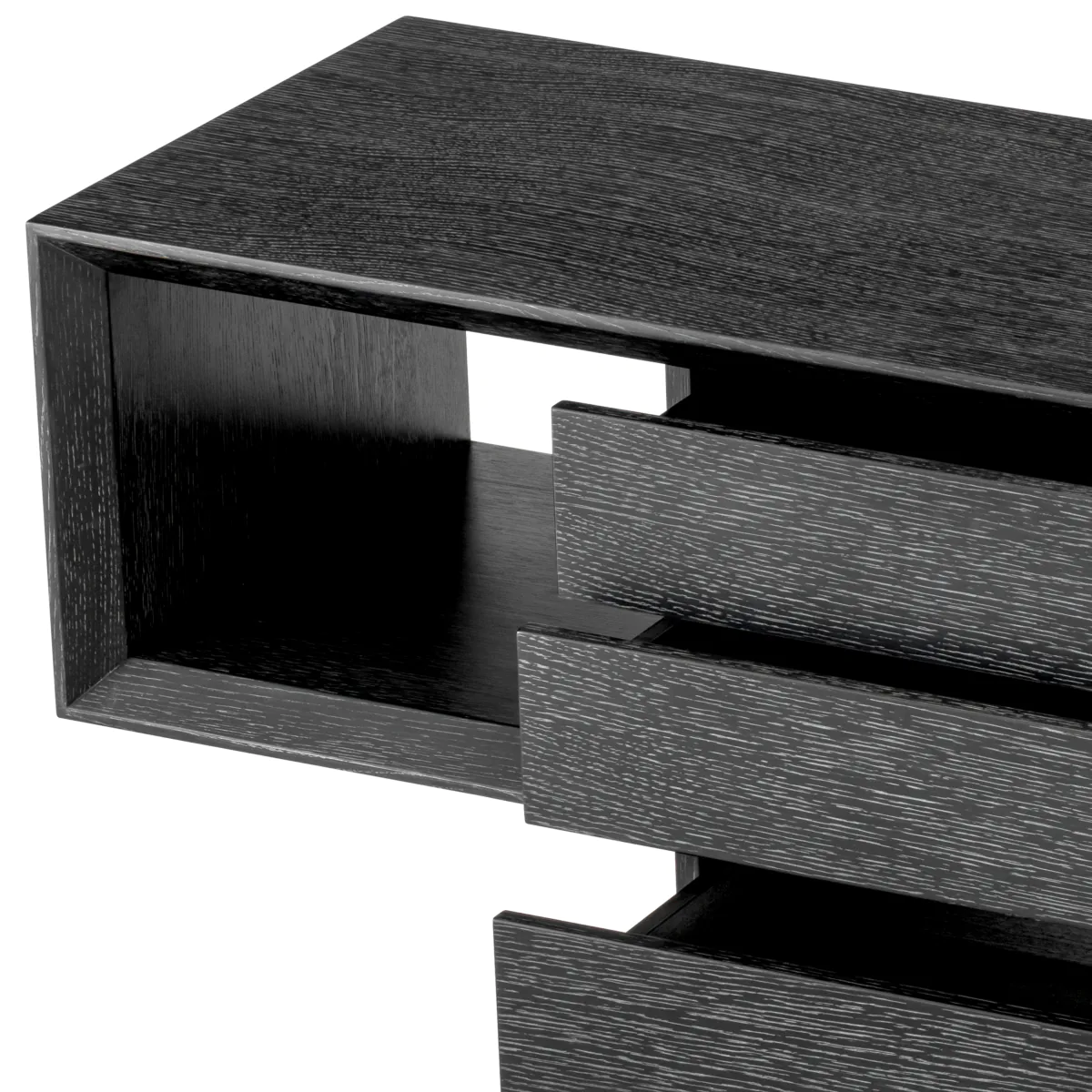 Eichholtz presenterar Mantua konsolbord, en lyxig möbel som förvandlar vilket vardagsrum som helst till en utställning av modern minimalism. Med sin mörkgråa ekfanér ger detta konsolbord en dämpad elegans och exklusiv charm, och erbjuder ett stilrent tillskott till Eichholtz sofistikerade utbud av konsolbord.