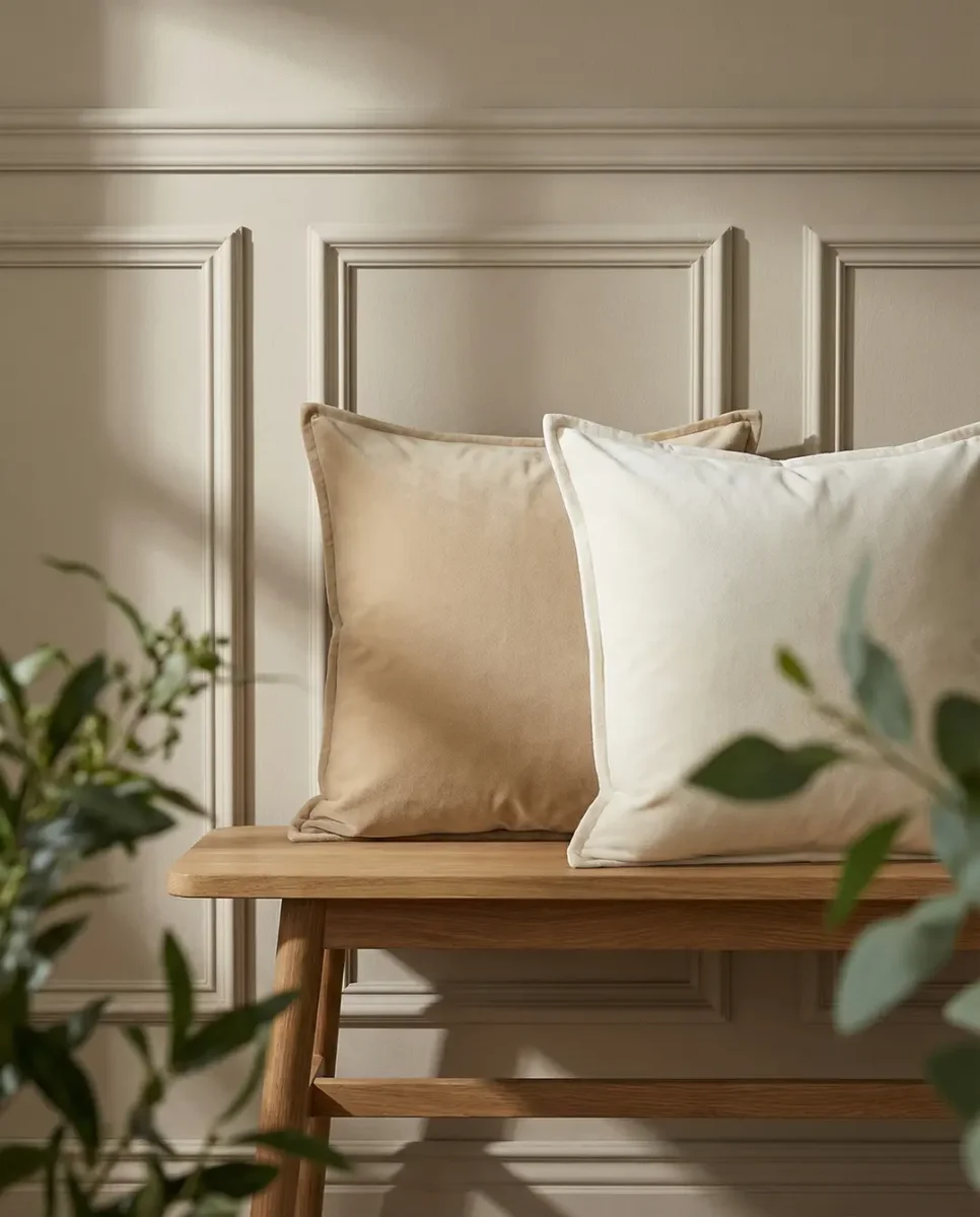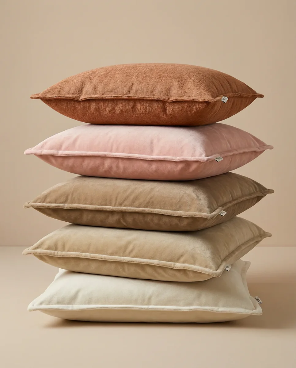Kuddfodral i mjuk bomullssammet i neutral sandton