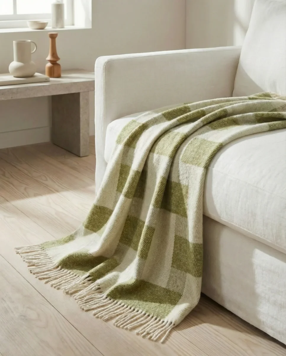 Jacquardvävd, vändbar pläd i NZ-ull – Grön