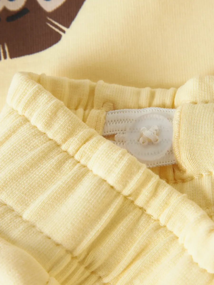 Gula med lejonprint på ena benet och texten wild one på andra benet