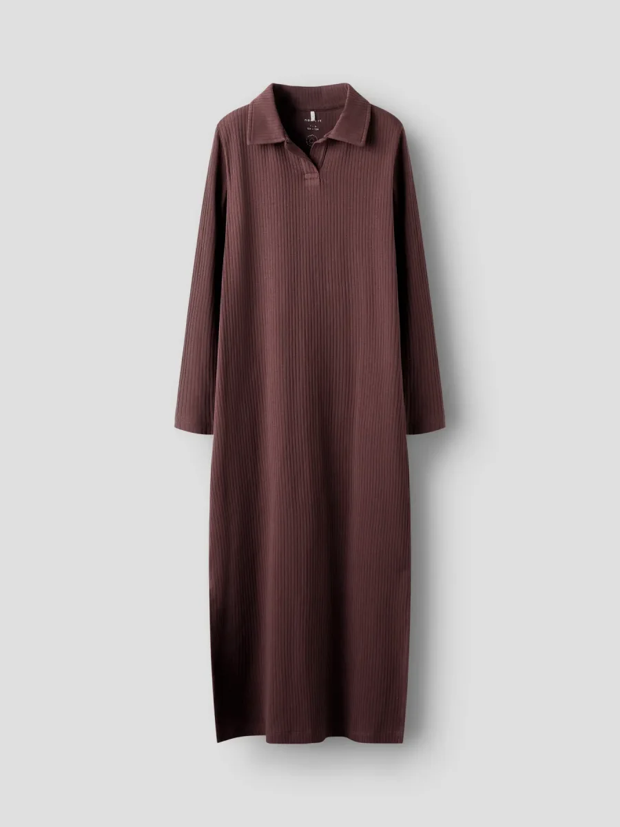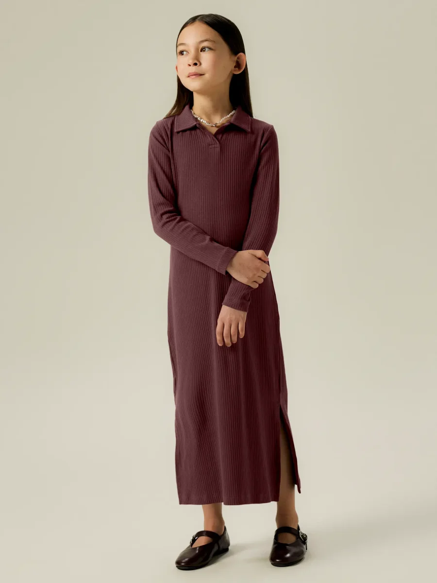 Ribbad klänning med krage från Name It. Slits längst ner på båda sidorna.