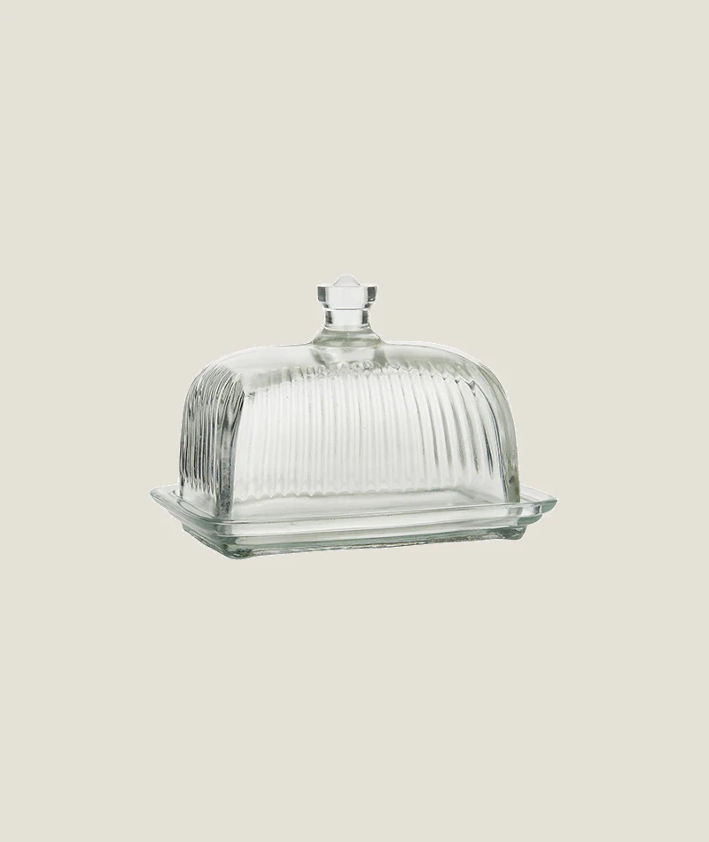 Här är vår eleganta smörlåda i glas, det perfekta tillskottet till din köksutrustning. Tillverkad av högkvalitativt glas kombinerar denna smörlåda funktionalitet med tidlös stil.