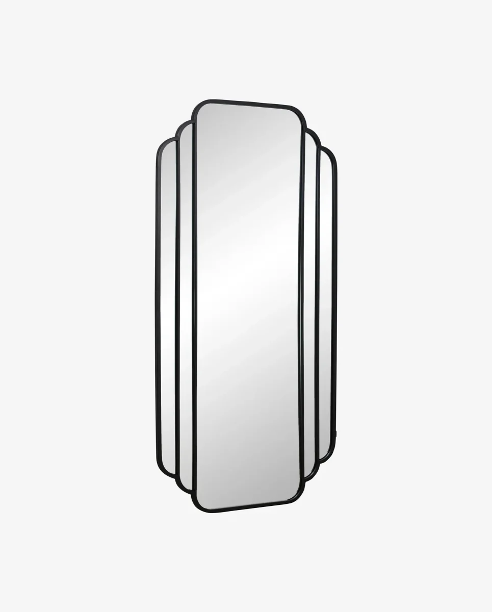 SKYLARK spegel från Nordal har en elegant svart pulverlackerad metallram som skapar en stilfull fokuspunkt i hemmet. Den mjukt välvda ramen ger spegeln en dekorativ och subtilt iögonfallande detalj som lyfter inredningen.
