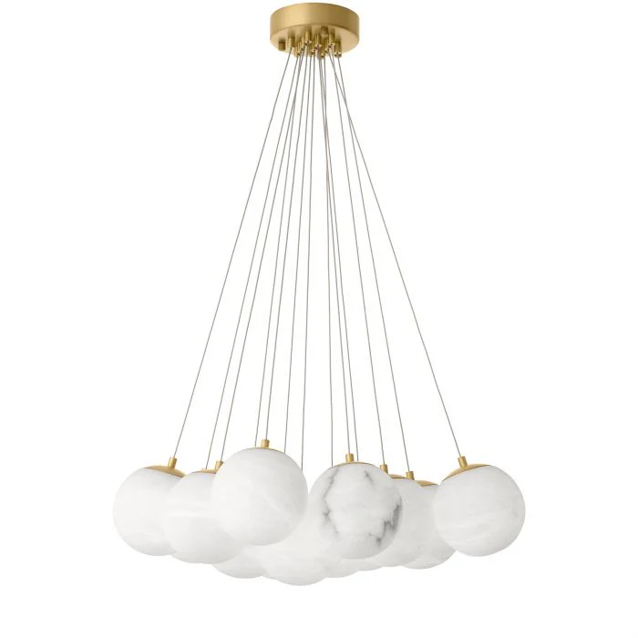Upplysande, som månen på en klar natt, förtrollar underbara taklampan Sphinx med sin eleganta komposition av slät alabaster (en kalkrik sten som släpper igenom ljus på ett mycket härligt sätt) och antik mässingfinish. Alabaster är ett naturmaterial där varje stycke skiljer sig i färg, opacitet och ådring. Trådarna är justerbara så olika kompositioner kan skapas. Som en essentiell del skapar Sphinx en harmonisk glöd i vilket utrymme som helst.