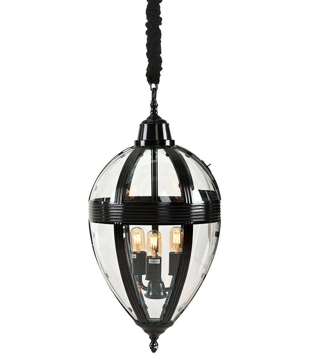 Timeless Drop är en vacker taklampa i svart metall och glas från Artwood med en stilren och elegant design i färgen Black. Längd på kedjan är 120 cm och ett svart sammetsöverdrag på 1,8 meter. Den är utrustad med tre E27-socklar. Ljuskällor ingår ej.