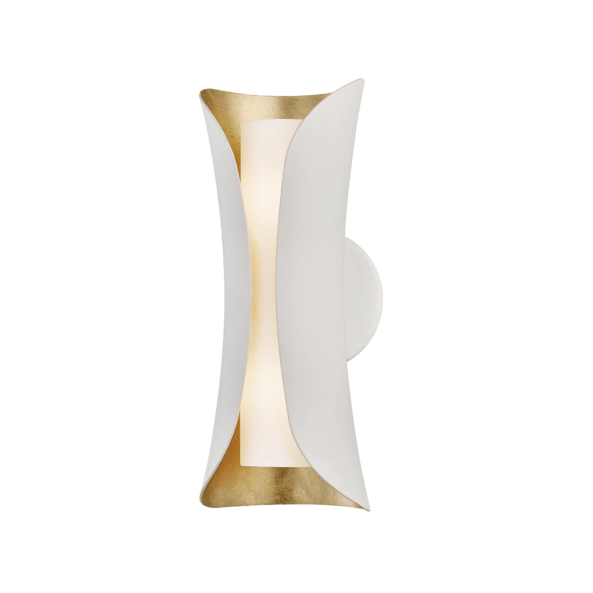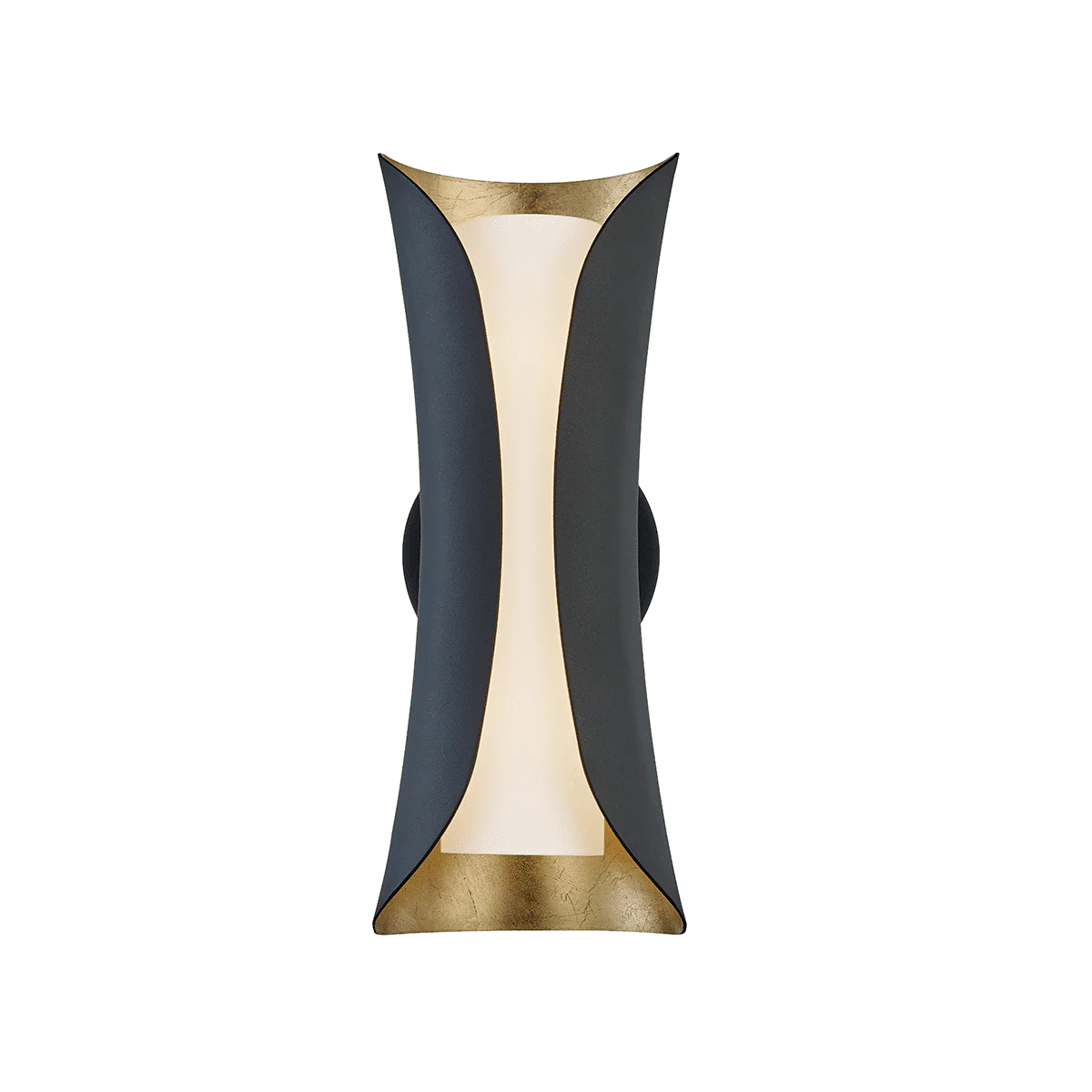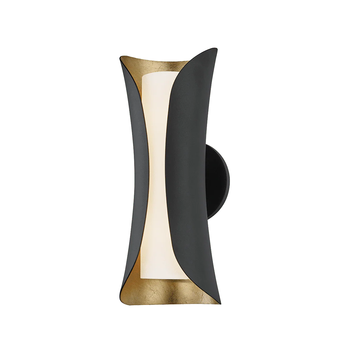 Bending a sheet of metal into a shape like a forearm cuff, Josie’s jewelry-of-the-room vibes are enhanced by its use of hand-applied gold leaf. Not only does this glamorous touch add great visual texture, it reflects the light it wraps around in elegant embrace.